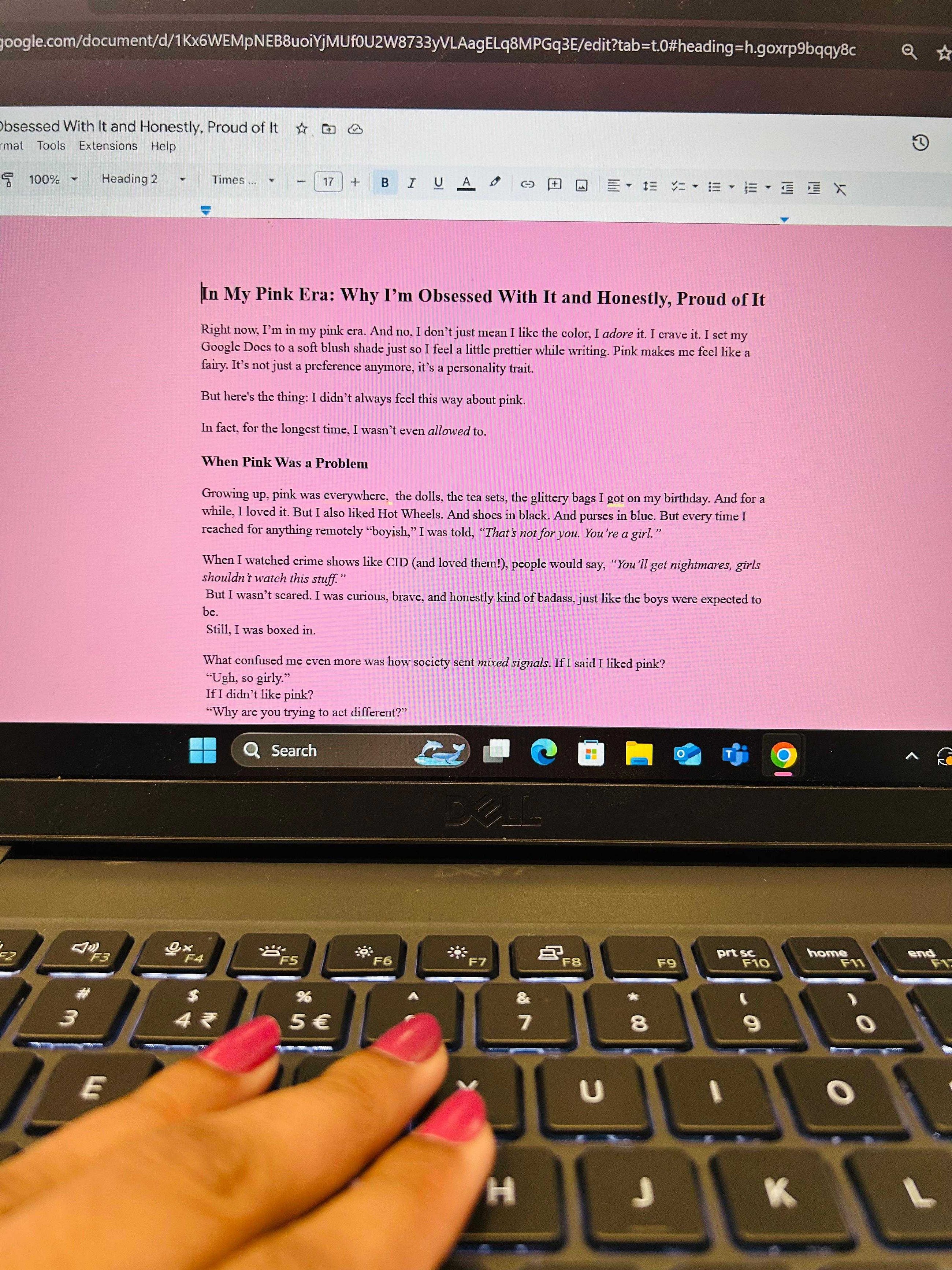 Right now, I’m in my pink era. And no, I don’t just mean I like the colour, I adore it. I crave it. I set my Google Docs to a soft blush…
